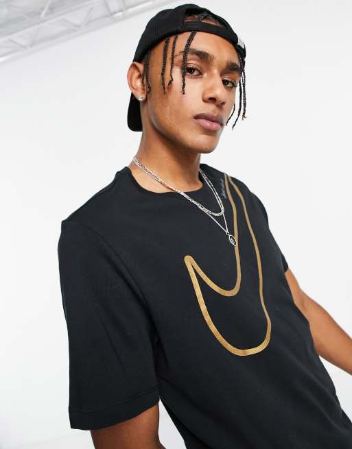 Nike T Shirt In Schwarz Und Gold Mit Grossem Logo Asos